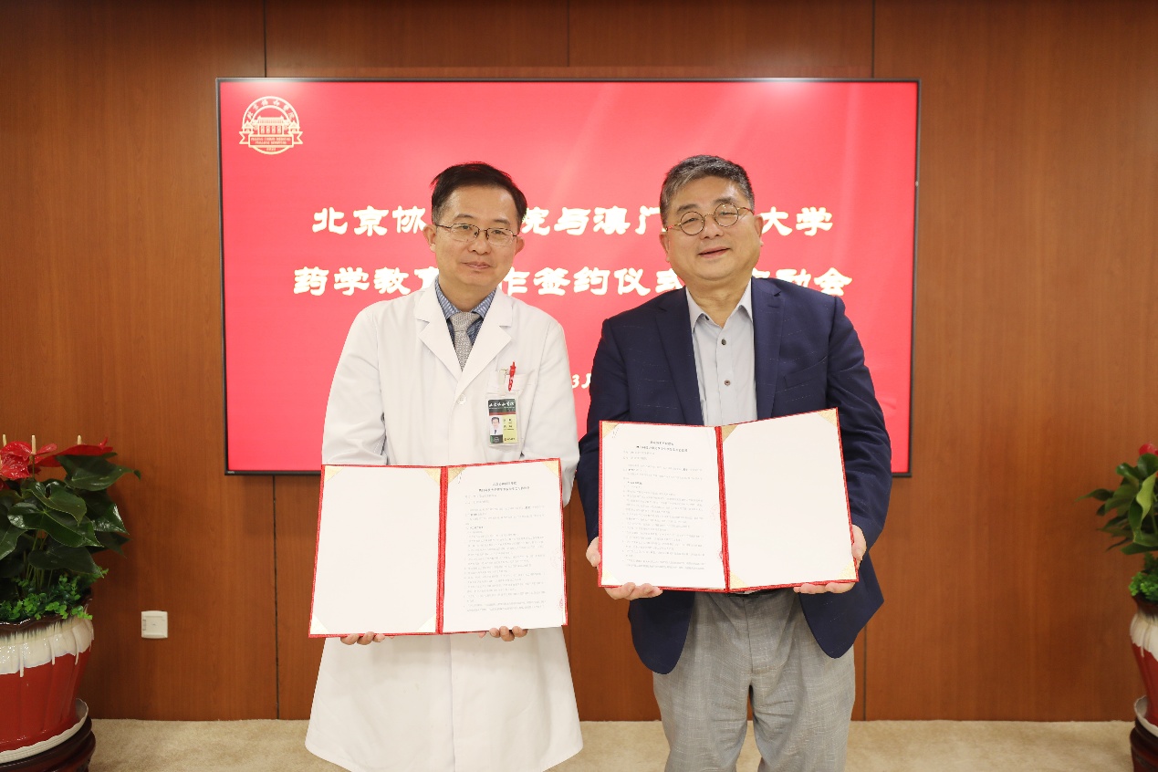 本次签约仪式由北京协和医院药剂科张波主任主持,协和医院教育处处长李航致开幕辞。李航处长对澳科大药学院团队的到访表示热烈欢迎,并强调:「此次合作是推动药学教育临床化、国际化的重要实践。我们期待通过资源共享与人才共育,探索药学服务创新模式,为京澳医疗协同发展注入新活力。」朱依谆院长在致辞中回顾了双方的合作:「协和医院百年沉淀的医学底蕴与澳门医学中心建设一脉相承,此次合作既是历史情谊的延续,更是面向未来的战略选择。」 他指出,作为祖国的「掌上明珠」,澳门在药学领域的发展虽起步较晚,但近年来通过深化区域合作持续发力。为加速药学专业人才培养,学院会通过严格选拔机制,选派一批优秀学生赴北京协和医院开展临床实践,致力为学生打造高起点职业发展平台。他相信学生在协和医院实习的经历这段经历不仅会夯实学生的科研转化能力与临床思维,更将塑造其「以患者为中心」的职业信仰——这些成长印记,终将转化为推动澳门医药卫生事业发展的基石。
