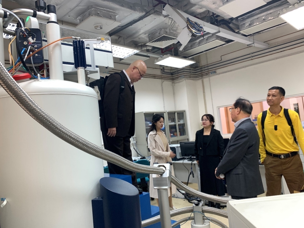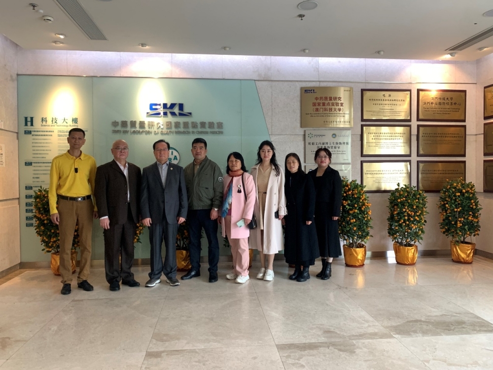 在藥學院丁倩助理教授的陪同下,兩代表團首先參觀了中藥質量研究國家重點實驗室。親臨感受了澳門科技大學在中藥、藥物方面的研究氛圍與成果。高度讚揚了澳科大在中醫藥發展領域的貢獻。