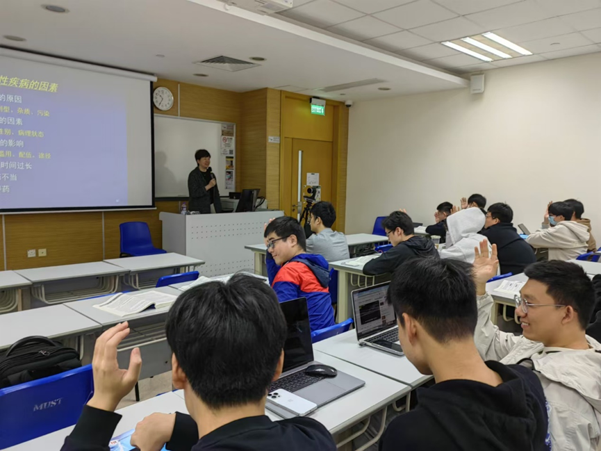 互动环节中,师生们踊跃提问,围绕药物研发的技术难点及合理用药的规范管理展开了热烈讨论。葛教授结合自身丰富的临床经验,逐一解答问题,进一步加深了学生对理论知识与实践应用的理解。