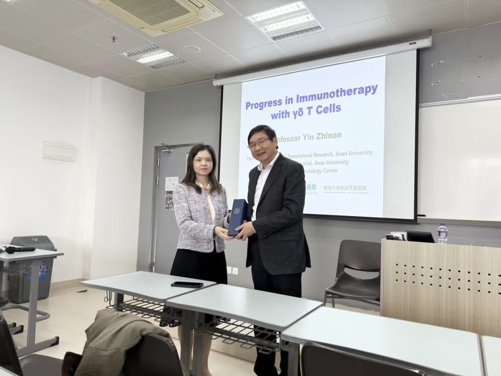 2024年11月21日,暨南大學尹芝南教授應邀來我校為醫學院-藥學院的博士生們帶來了一場精彩的學術講座,主題分別為《Progress in Immunotherapy with γδ T Cells》和《IL-27 Promotes AdipocytesThermogenesis Program》。尹教授全面分享了其團隊在腫瘤免疫治療和代謝疾病研究領域的前沿成果,展現了其開創性研究對人類健康的重要貢獻。