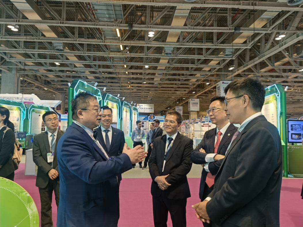 澳门科学技术发展基金主席谢永强和科技部国际合作司司长戴钢等嘉宾参观朱依谆院士展位并交流