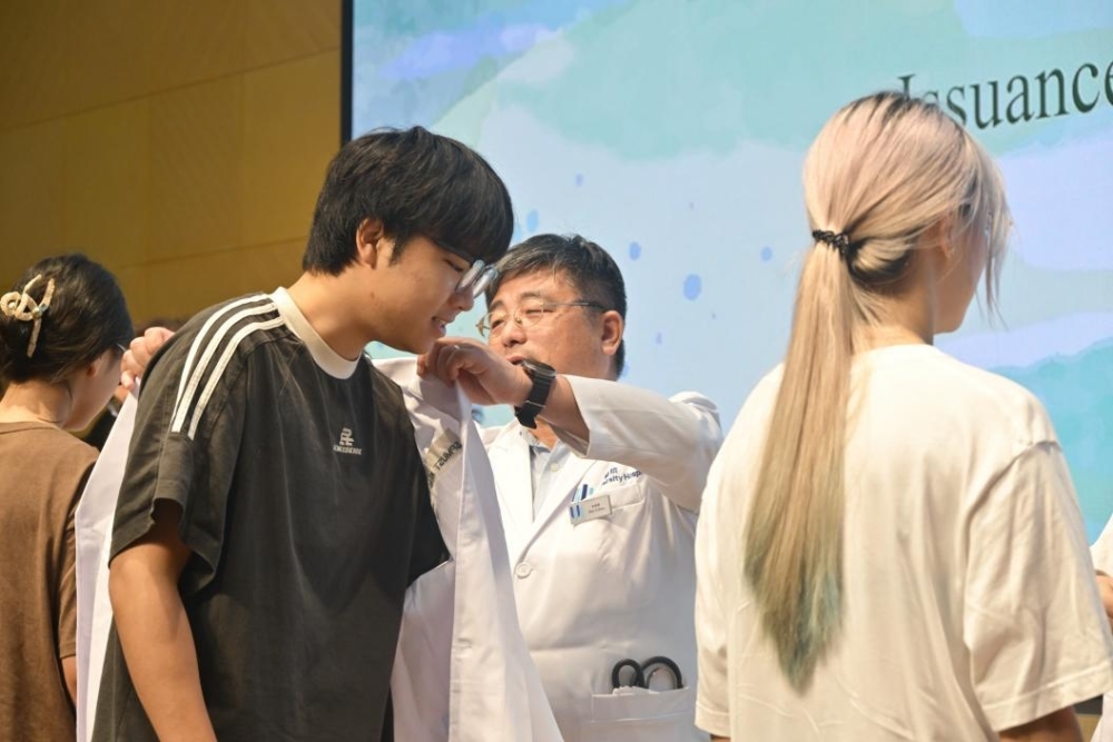 隨後,藥學院教師們為2024屆新生授與白袍並宣誓。