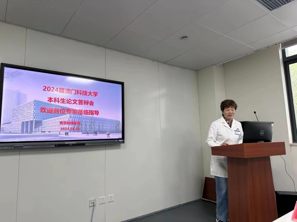 4月24日,我院2019级本科生毕业论文答辩会在南京鼓楼医院举行,30名在南京鼓楼医院药学部及临床药学实习的同学参加此次答辩会。论文答辩会由南京鼓楼医院教育处师资科李秀科长主持,南京鼓楼医院葛卫红教授、澳门科技大学医学院-药学院院长朱依谆院士致辞,对于同学在南京鼓楼医院完成为期8个月的实习作出点评与总结,为同学的职业道路及未来发展明晰方向,张晋萍副主任介绍答辩分组安排,答辩过程分为学生陈述和评委提问两个环节,评委在学生陈述及通读论文后进行论文相关内容提问,考察学生掌握专业知识的熟练程度,根据论文呈现及汇报表现点评,对同学们的毕业论文提出了宝贵意见。