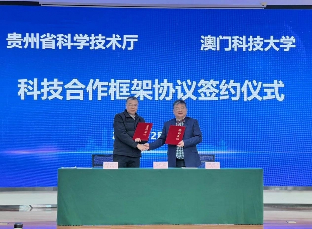 日前,為推進貴州省與澳門科技大學在中醫藥科技領域建立高效務實的合作關係,貴州省科技廳邀請澳門科技大學協理副校長、藥學院院長朱依諄院士及中醫藥學院助理院長吳其標教授一行赴貴陽交流訪問,出席《貴州省科學技術廳澳門科技大學科技合作框架協議》儀式,並洽談具體合作事宜。