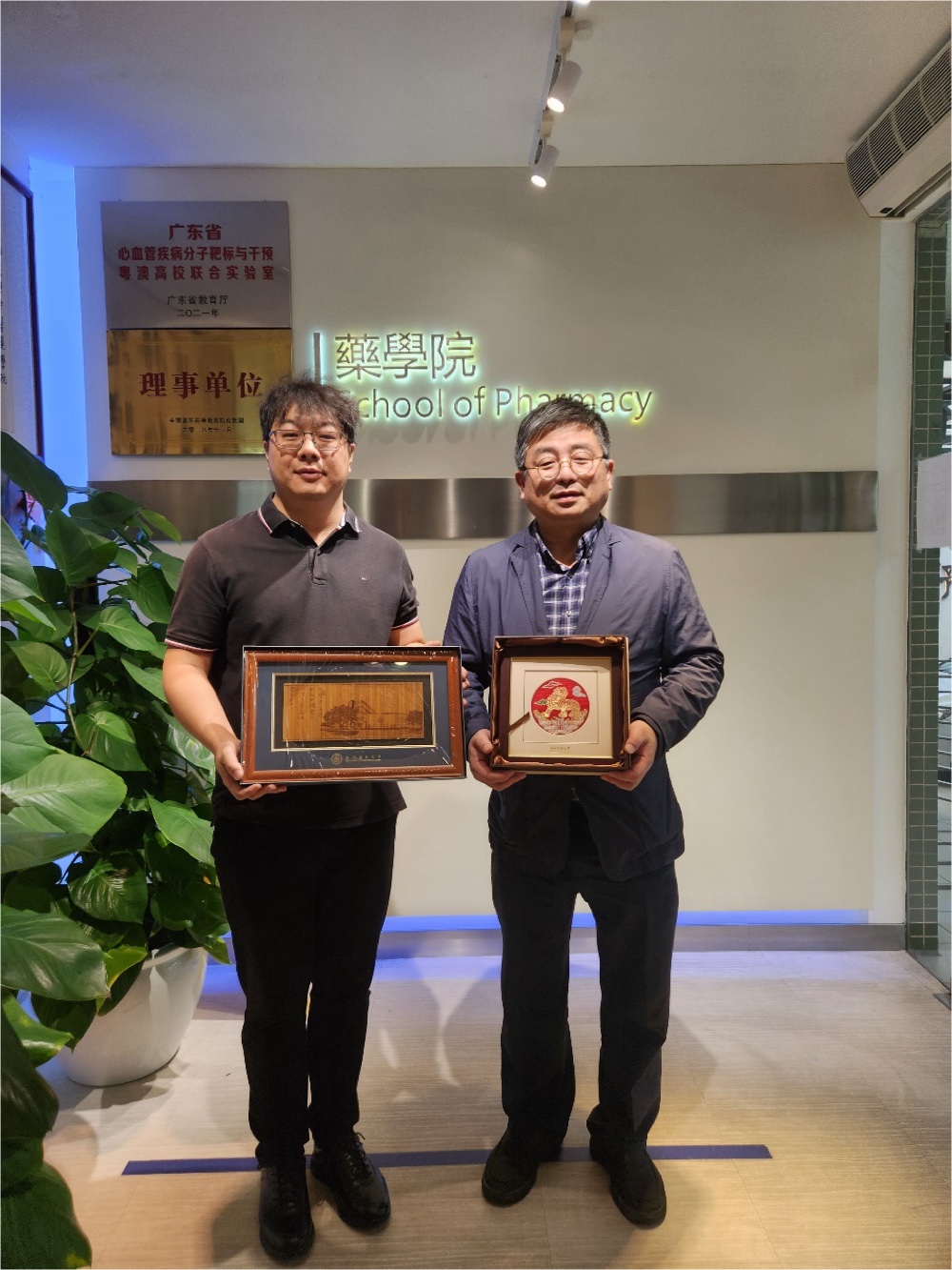 图1 潘荣杰先生(左)和朱依谆院长(右)互相赠送纪念品