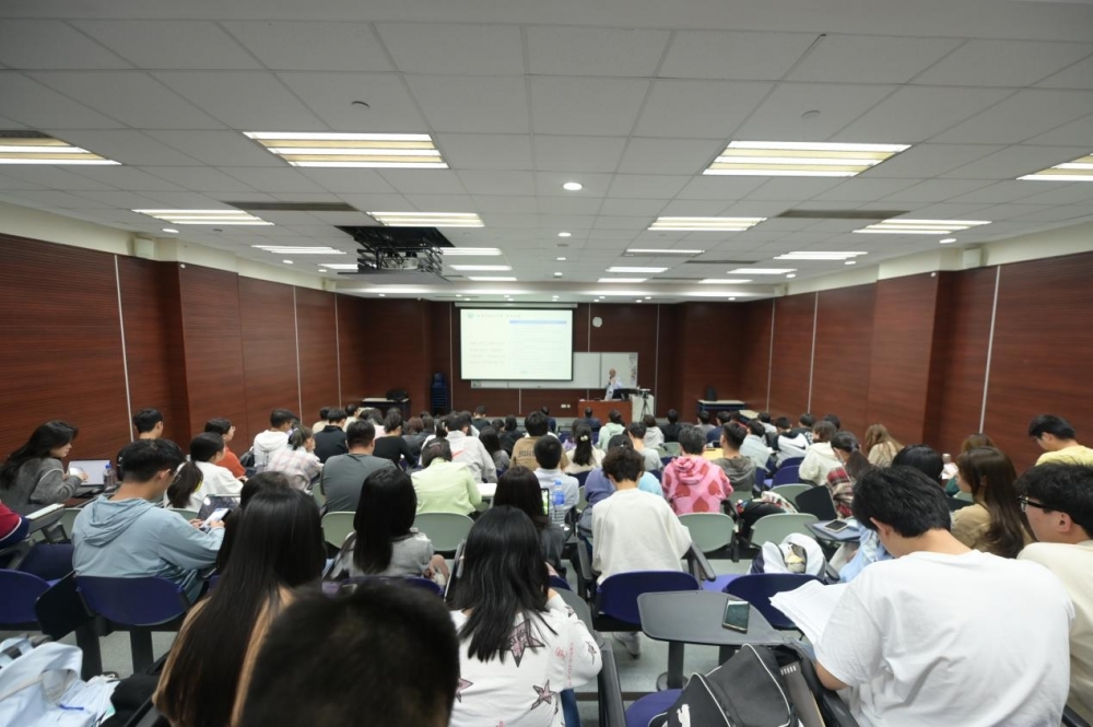 夏老師開場以家鄉的大蜀山、八公山、琅琊山、大別山、九華山、黃山等名山,在不算寬廣的教室勾畫出一副綿綿不絕的山景。在座的聽眾不知不覺地置身於雲霧繚繞的群山之間,感歎大自然的鬼斧神工,還有來自遠山的呼喚——夏老師終身致力於創立“人文藥學”的夢想和堅定的登山尋夢步伐!畫面一轉,夏老師又帶我們遨遊在“蘭亭集序”,“龐加萊猜想”等古今中外的時空交錯和星辰大海之中。夏老師通過取法乎古廬州城門上曾高懸“江左唇齒,淮右襟喉”八字,化成為“藥學唇齒,人文深喉”,以示對家鄉致敬,對人文藥學致敬!更是鼓勵大家熱愛藥學,思考藥學,推動藥學科學的發展。夏老師娓娓道來的每個故事,無不蘊含著人類偉大的智慧,讓在座的各位師生沉浸在這場人文藝術的盛宴之中。時光飛逝,短暫而精彩的講演來到了尾聲,在這場精彩而富有哲理的報告中,夏老師從哲學和自然科學,結合自身的教育背景和興趣角度,為我們勾勒出一副結合人文精神、人文情思、人文知識方面的人文藥學的線條。