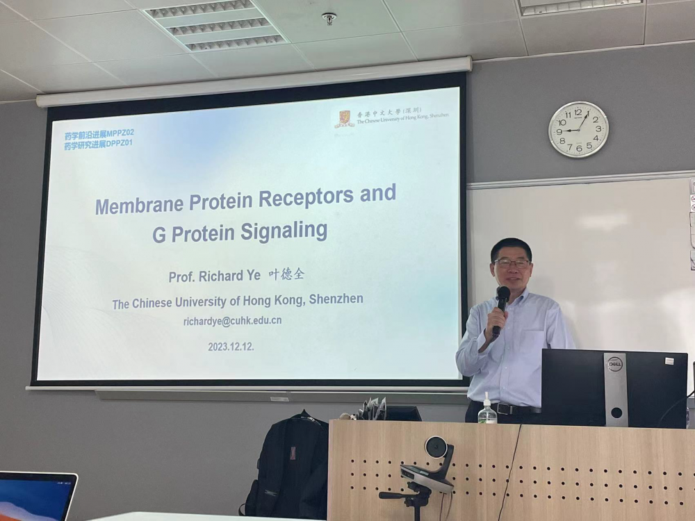 2023年12月12日,香港中文大學(深圳)生命與健康科學學院院長葉德全教授應邀來我校分別為醫學院_藥學院的研究生及本科生舉辦了題目為《Membrane Protein Receptors and G Protein Signaling》的精彩學術講座。