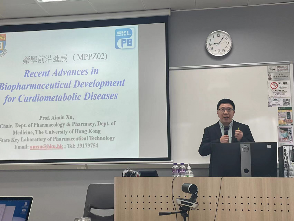 2023年11月28日,香港大学徐爱民教授应邀来我校分别为医学院_药学院的研究生及本科生举办了题目为《Recent Advances in Biopharmaceutical Development for Cardiometabolic Diseases》的精彩学术讲座。