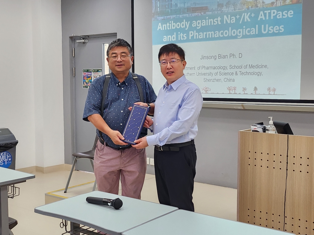2023年10月17日,南方科技大学医学院药理学系卞劲松教授应邀来我校分别为医学院_药学院的研究生及本科生举办了题目为《Antibody against Na+/K+ ATPase and its Pharmacological Uses》的精彩学术讲座。