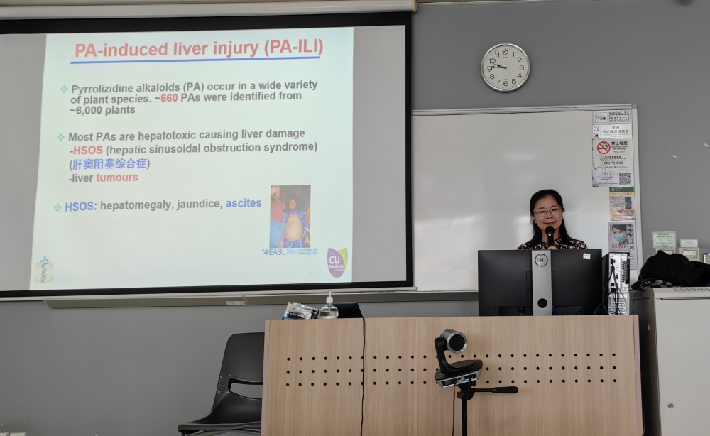 中草藥研究中的安全性評估是不可或缺的一部分,它有助於確保中草藥的使用是安全的。在本科生的講座中,林鴿教授從藥物不良反應(ADR)出發,接連講解了藥物性肝損傷(DILI)、中草藥引起的肝損傷(HILI),還介紹了中國近年來DILI和HILI的情況。在研究生的講座中,林鴿教授給大家分享了她們團隊近期發現,吡咯裡西啶類生物鹼(PAs)是一種廣泛存在於菊科、豆科、紫草科的多種藥用植物中的肝毒性物質,臨床可導致肝竇阻塞綜合。林鴿教授團隊發現通過分析PAs 引起的DNA突變特徵,並基於該突變特徵的分析以及動物、細胞模型的體內外研究顯示,我國可能有超過40%的肝癌與PAs暴露有關。林鴿教授團隊的研究為PAs相關人類肝癌的預防方法和預防奠定了科學基礎。本次講座非常精彩,為藥學院的學生帶來了豐富的知識和益處。