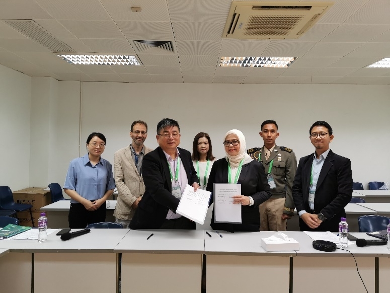 出席会谈和签字仪式的印尼共和国国防大学军事药学院代表还包括Dr. Muhammad Ikhsan和学员Musadat Furqon Baihak。我校医学院(药学院)代表包括叶丽教授、Paolo Coghi助理教授和卞西清助理教授出席了双方会面和签字仪式。