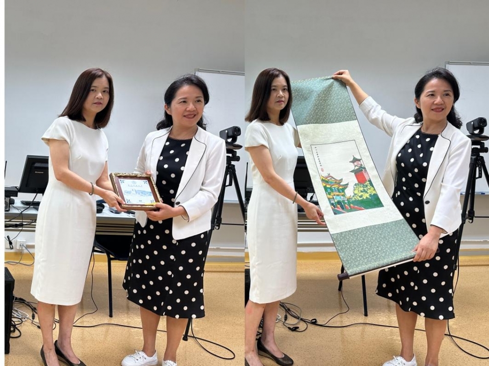 图2.叶丽教授和范瑾书记互相交换纪念品
