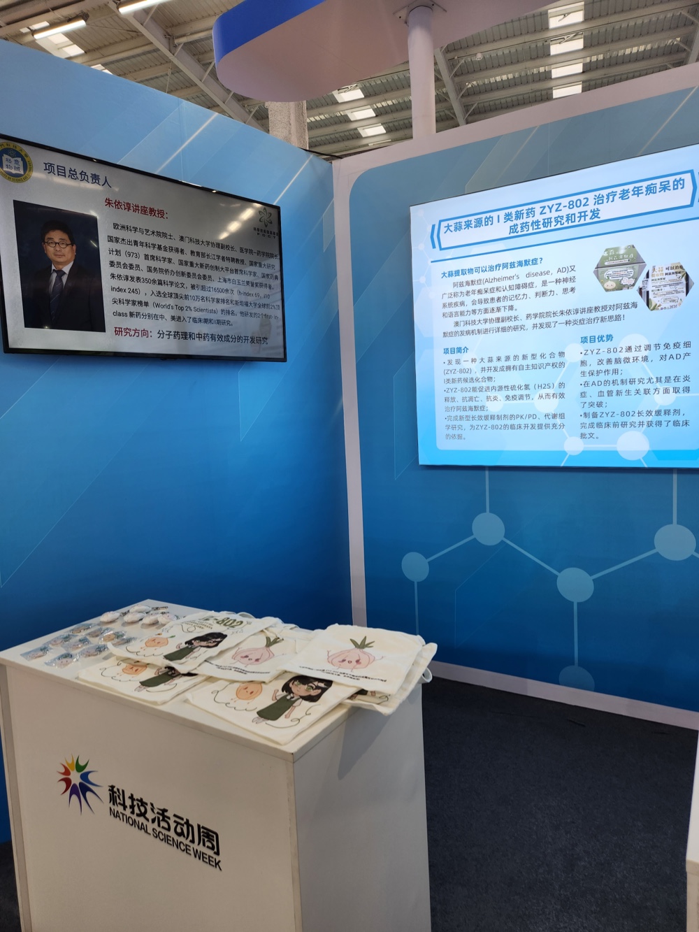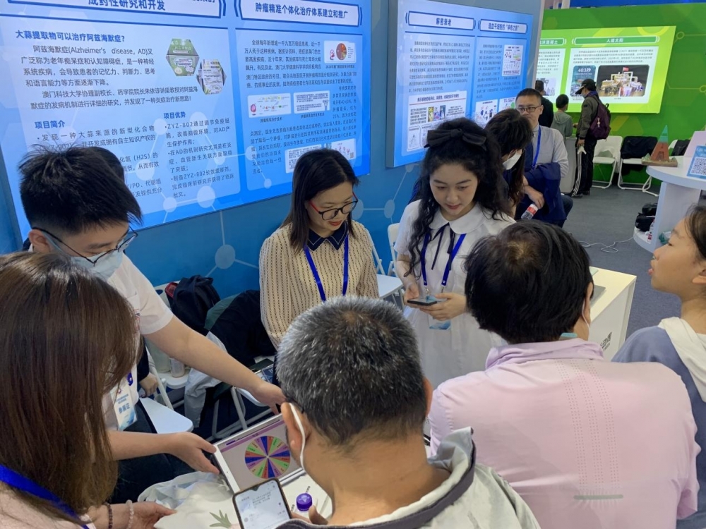澳門科技大學協理副校長、歐洲科學與藝術院院士、醫學院—藥學院院長朱依諄講座教授團隊的“大蒜來源的I類新藥ZYZ-802治療阿爾茨海默症的成藥性研究和開發”作爲澳門政府推廣項目代表之一進行展示。本次活動由澳門科學技術發展基金組織和支持,目的是配合澳門特別行政區科技發展政策的目標,加強對本澳的科研成果宣傳推廣,提升澳門科研成果的知名度,加強推動科研成果轉化;同時為本地青少年創造深入瞭解高水準科研成果的機會,通過“做中學”使青少年進入科技研發過程,提升其科技成果推廣技能,鼓勵青少年投入參與科技創新,培養未來的科技人才。朱依諄講座教授團隊的項目是在澳門科學技術發展基金重點項目(0007/2019/AKP)和實驗室專項(003/2022/ALC)等項目的資助下,開創性地開展了一系列基於藥理學的新藥發現和產業化研究,ZYZ-802已經實現專利轉化,並作爲澳門第一個申報國家藥監局First-in-Class的新藥臨床研究項目。研究團隊期望項目能獲得最終臨床研究成功,未來為阿爾茨海默症患者帶來福音。