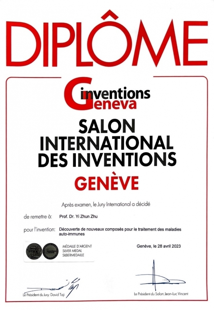 澳门科技大学协理副校长、医学院——药学院院长朱依谆讲座教授团队近日在第四十八届日内瓦国际发明展上获得银奖。该项目获奖是基于自身免疫性疾病的新药发现,团队发现新化合物——硫化氢供体ZYZ-802具有独特的治疗炎症和免疫应答的作用,在类风湿性关节炎的治疗方面取得了突破,这发明也是基于药理学的分子机制研究发现在炎症的新靶点治疗作出了有效的探索。