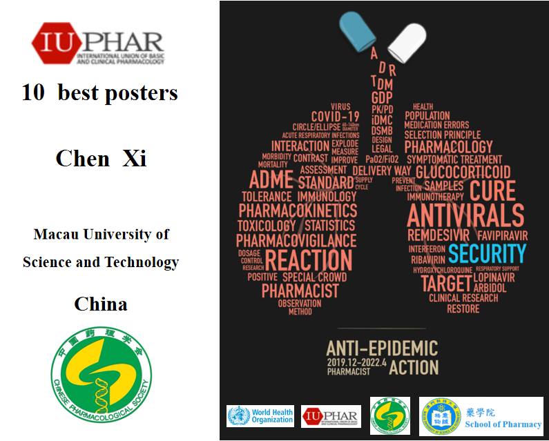 近日,国际基础和临床药理学联合会(International Union of Basic and Clinical Pharmacology, IUPHAR)主办的2022年“World Smart Medication Day”主题活动比赛结果公布,我校学子喜获佳绩:药学院2018级药学专业本科生陈僖(指导教师张欣)、2021级药学专业本科生金欣阳(指导教师周娜)的海报被评为中国区选拔赛优秀作品。其中,陈僖同学在科普类作品中获中国赛区第一名,获推荐资格参加IUPHAR主办的“International students’ poster competition”。在国际比赛中,参赛选手分别来自中国、英国、加拿大、瑞士、意大利、韩国等14个国家,经过线上对作品的展示与评比,最后陈僖同学的作品代表中国获得全球“10 best posters”的荣誉。