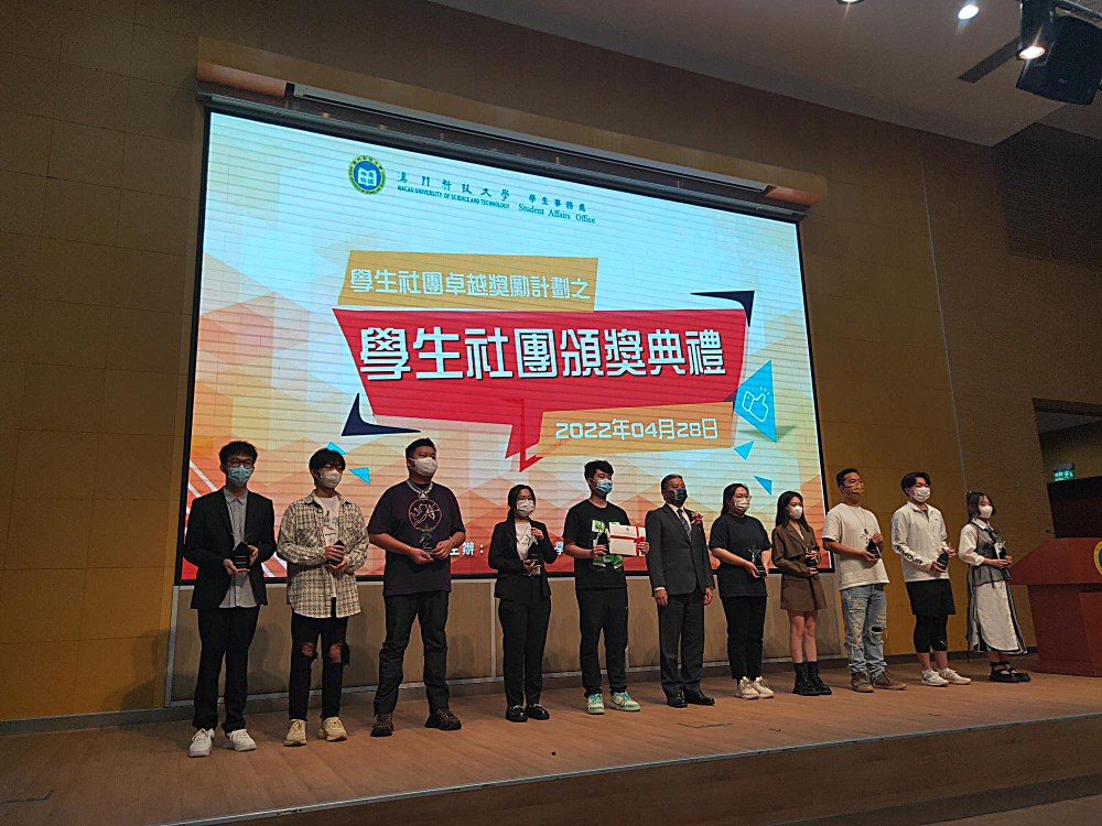 2022年4月28日,由澳门科技大学学生事务处主办的“学生社团卓越奖励计画”颁奖典礼在N101礼堂如期举行。澳门科技大学学生会药学院学生会在本届评选中荣获“十大优秀学生社团奖”。