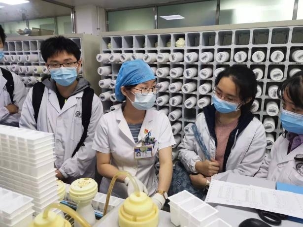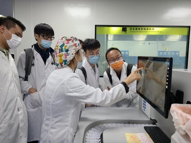 隨後,學生們實地參觀了臨床藥學部、門診西藥房、中心藥房、中藥房和靜脈用藥調配中心,醫院帶教老師也為我院師生詳細介紹了各部門特色工作。在參觀中,我院學生也積極提問,展現出良好的精神風貌和專業素養。