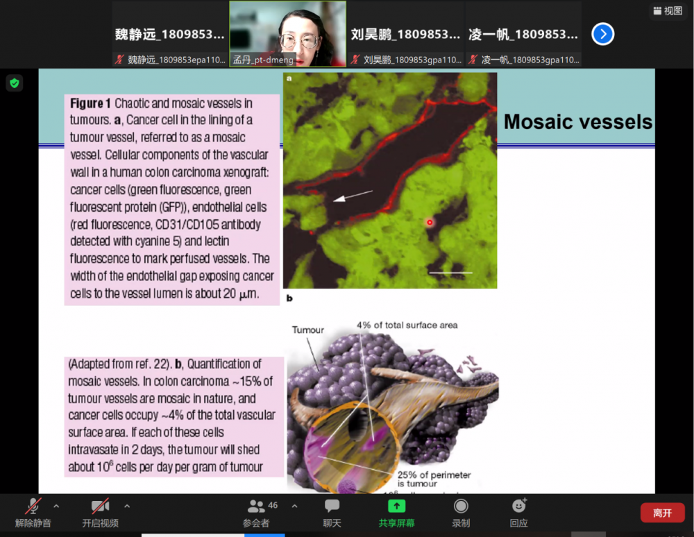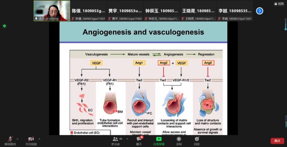 2021年10月15日,由於疫情因素,復旦大學孟丹教授教授應邀在線上為我院本科學生展開了藥物科學前沿講座,併發表了題為《Angiogenesis and diseases》的精彩報告。