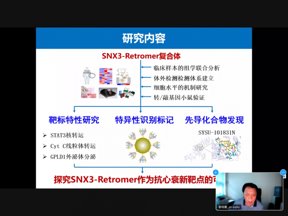 2021年10月11日,由于疫情因素,中山大学药学院副院长刘培庆教授应邀在线上为我院本科学生展开了药物科学前沿讲座,并讲述了“慢性心衰的干预策略及潜在治疗靶点”及“高血压心肌肥大的潜在治疗靶点及新药研发”两方面的内容。