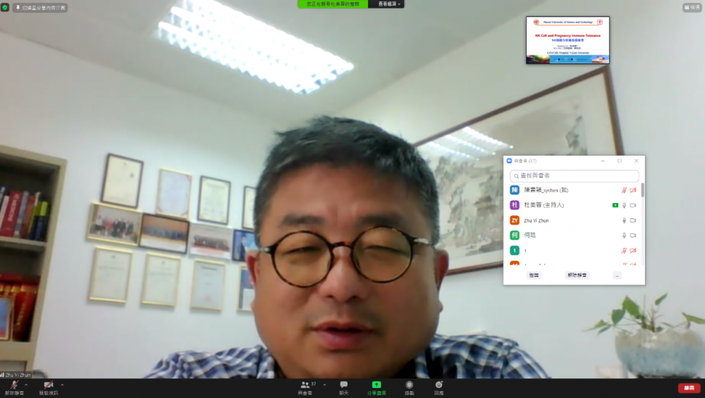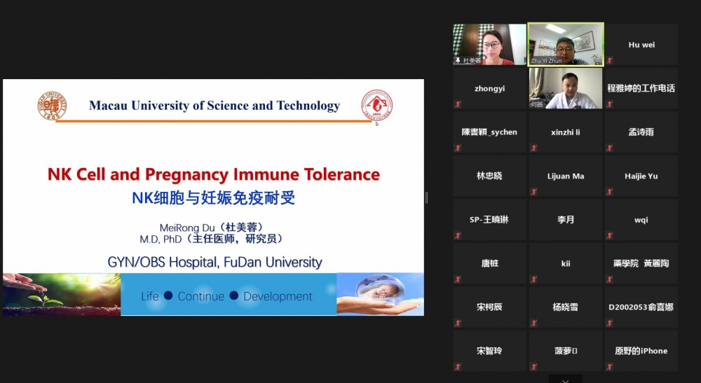 2021年8月10日,复旦大学附属妇产科医院研究所副所长杜美蓉教授受邀为我校药学院师生开展线上讲座,分享了NK细胞与妊娠免疫耐受相关科研成果,该讲座由澳门科技大学药学院院长朱依谆讲座教授在线主持。