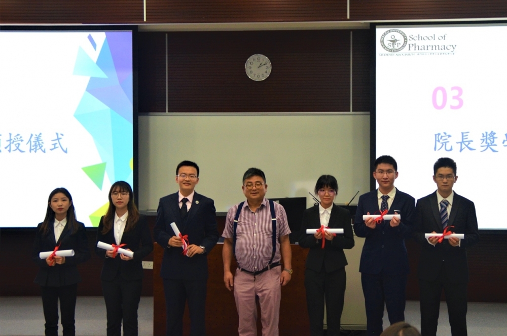 藥學院院長朱依諄講座教授為獲獎同學頒發院長獎學金