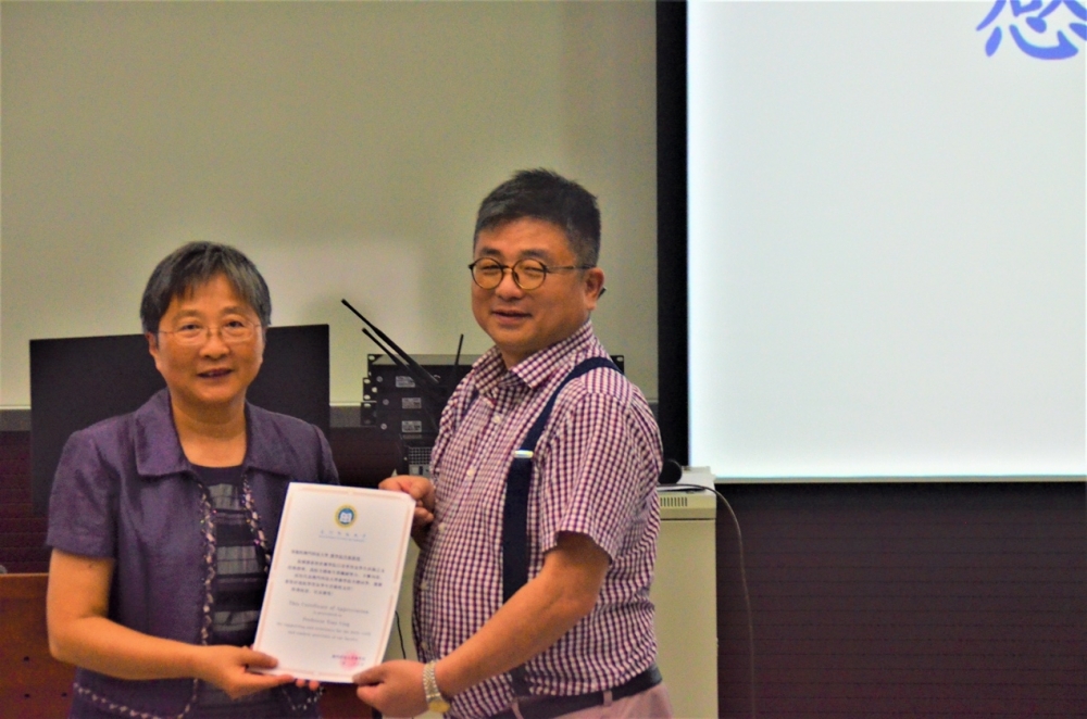 藥學院院長朱依諄講座教授為食品與營養科學課程主任肖穎教授頒發感謝狀