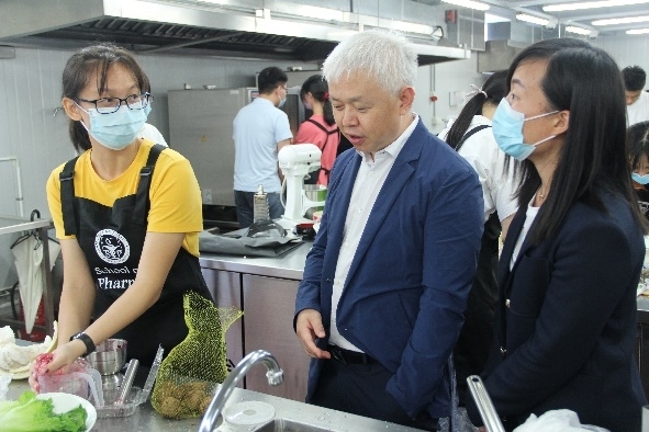 澳门科技大学学生会药学院学生会于11月22日(周日)在C109厨艺实验室举办了第二届“意诚”杯健康料理厨艺比赛。本次活动由澳门科技大学学生会主办,澳门科技大学学生会药学院学生会协办,澳门高等教育基金赞助,澳门科技大学、澳门科技大学药学院支持举办。本届比赛的主题是“针对糖尿病病人的低糖餐”,莅临本次活动现场担任评委的有来自澳门营养学会的尤淑瑞理事长,医学院课程主任肖颖教授和王玲副教授,中医药学院院长周华教授 ,药学院课程主任谢莹副教授以及酒店与旅游管理学院课程主任杨洁云助理教授。比赛中药学院王晓琳助理教授来到现场协助主办方工作人员。