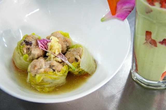 经过了一个半小时的烹饪,各组参赛选手的菜品陆续结束制作。