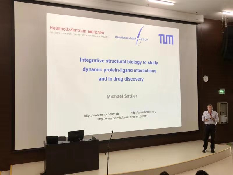 藥學院在O座702室邀請兩位教授舉行了學術講座。講座上, Michael Sattler教授對自己從事的主要研究內容進行了初步介紹,他首先介紹了德國環境健康研究中心概況,介並重點介紹了自己所在的亥姆霍茲聯合會慕尼克中心結構生物學研究所的實驗室,向我們展示了NMR中心和化學實驗中心的先進實驗設施。然後他以自己的研究為例,向大家介紹了蛋白質複合物的結構生物學。隨後,Rui Wang-Sattler教授也同樣以自己的研究內容為例向大家介紹了尋找代謝疾病病理生理學機制的研究方法和思路,令講座參與老師與同學們受益匪淺。