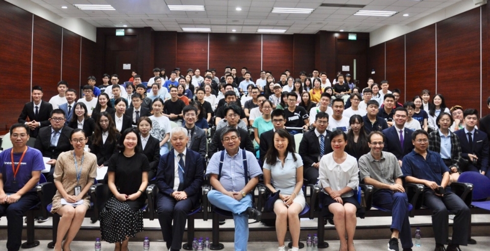 澳門科技大學藥學院2019/2020學年新生說明會暨“院長優秀生榜”頒授儀式於9月3日下午在圖書館大樓N317室圓滿舉行。出席的嘉賓有:澳門科技大學藥學院院長朱依諄講座教授,中醫藥學院副院長周華教授,國家藥監局GMP認證中心閆兆光主任,國家藥監局執業藥師認證中心陳嬌主任,藥學院課程主任謝瑩副教授,朱應懷助理教授,王曉琳助理教授,Paolo Saul Coghi講師,藥學院行政陳書穎小姐,齊偉技術員,董更婷技術員,以及藥學院新老學生一百四十餘人。