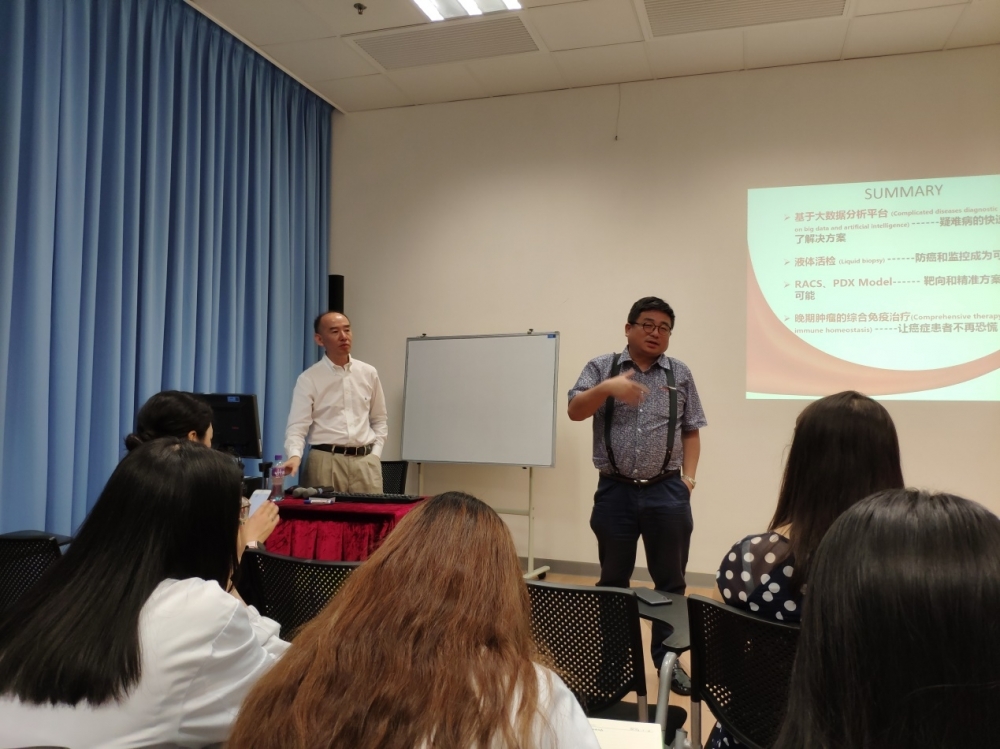劉傑教授在報告中深入淺出介紹了目前大數據分析在疑難病診斷中的強大輔助作用,臨床上防癌和控癌的手段,並突出強調免疫療法的應用讓癌症被當做慢性疾病進行治療,病人不再感到恐慌。劉傑教授還結合臨床病例給同學們講解了免疫療法的優勢所在,讓在座的師生受到深刻的啟發。