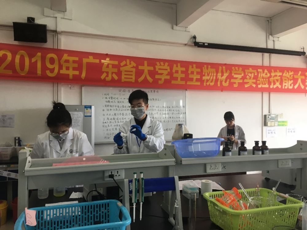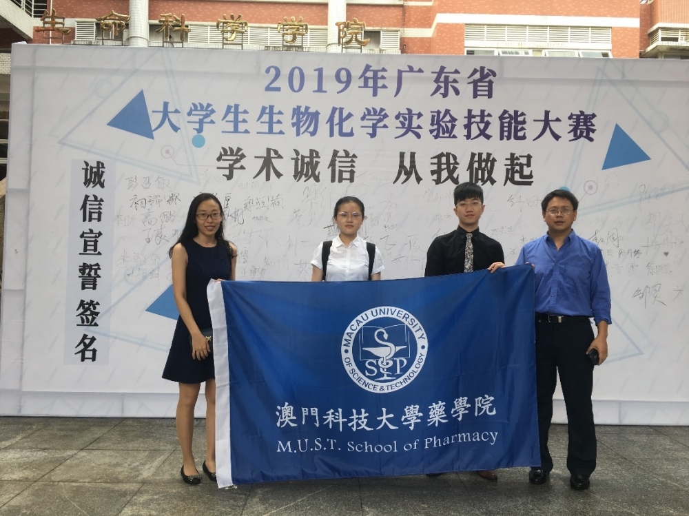 為助力粵港澳大灣區生命健康產業發展,培養學生創新能力和實踐能力,增進我校學生與內地學生之間的學術交流。我院選派三年級學生厲家齊,劉子鋮,袁嘉璐在朱應懷老師及董更婷老師的指導下首次參加2019年5月26日在華南農業大學生命科學學院舉行的第十八屆廣東省大學生生物化學實驗技能大賽決賽。在比賽中,我校參賽師生憑藉嚴謹的實驗項目書設計,熟練規範的實驗儀器操作,自信得體的彙報展示獲得舉辦方及評委的一致好評,並且接受了信息時報、金羊網等多家媒體的採訪。