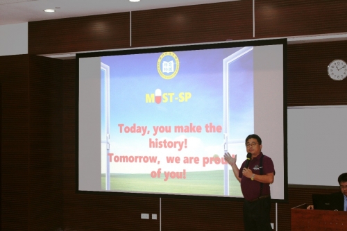 首先药学院院长朱依谆讲座教授为全院师生致辞,代表药学院欢迎大一新生的到来。以“小药丸中的科学大道理”为主题,勉励新生刻苦学习,在人生进入新的阶段中把握好大学时光。紧接著,朱院长介绍了药学院的师资团队以及学科特色,澳门科技大学药学院是全新的学院,但是建立起点很高,填补了澳门高等教育历史中的药学空白,且勉励全院师生:Today, you make the history! Tomorrow we are proud of you! 药学院依托先进的科研平台-中药质量研究国家重点实验室,不仅仅是为澳门培养自己的药剂师人才,更是提高澳门本土药物研发能力提供了世界水准的平台。