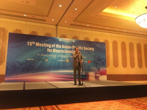 2018年8月27-29日,由澳门科技大学、亚太神经化学学会(Asian-Pacific Society for Neurochemistry, 简称APSN)承办,桂林医学院、澳门会议展览业协会协办,国际神经化学学会(International Society for Neurochemistry, 简称ISN)主办的第15届“亚太神经化学学会会议”在澳门金沙城中心假日酒店成功召开,此次会议为期3天。大会邀请了来自中国、德国、日本、韩国、新加坡、澳大利亚、马来西亚、印度、泰国等15个国家共91位中外知名专家和学者担任报告嘉宾,200多名神经科学领域的科研人员和学生参加了本次会议。