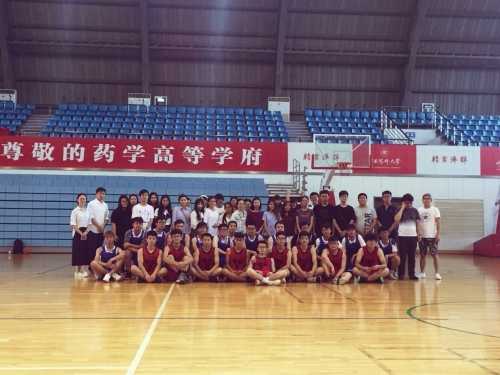 篮球友谊赛合影留念(红:中国药科大学 蓝:港澳学生)