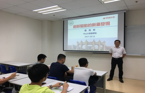 2017年10月11日上午,中山大學藥學院副院長羅海彬教來訪澳門科技大學。澳科大藥學院課程主任謝瑩副教授熱情歡迎和接待了羅海彬教授。