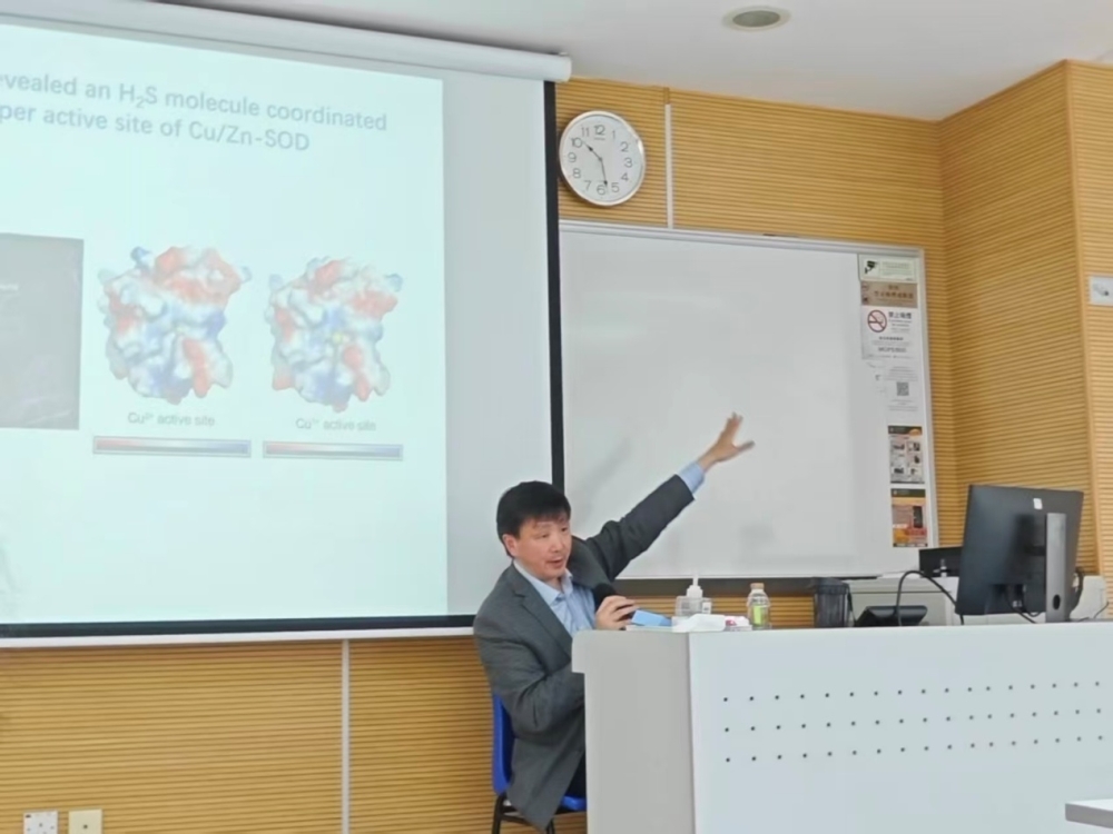 讲座伊始,朱依纯教授强调,研究生做科研要具备批判性思维,不盲从权威,敢于质疑,善于从不同角度发现问题。在本次讲座中,朱依纯教授首先介绍了H2S的生理功能,再以H2S促血管新生模型为切入点,在血管内皮细胞中发现了介导H2S促血管新生作用的靶分子为VEGFR2, 其分子开关为Cys1024-Cys1045,并阐明了H2S调控此分子开关的原子生物学机制(硫-硫原子亲核攻击分子开关原理)。由此工作进一步揭示H2S其实是作用于不同受体酪氨酸激酶家族成员中具有共同结构的胞内激酶活性区,作用于其中共同的分子开关而对若干受体酪氨酸激酶家族成员进行结构和功能的调节作用,包括对胰岛素受体和EGFR的直接调节作用。尽管VEGFR2、胰岛素受体和EGFR等受体酪氨酸激酶家族成员具有不同的胞外段和相应的胞外配体(VEGF、胰岛素和EGFR),他们的胞内激酶活性区的结构是相识的;这一工作揭示了这三个不同的家族成员具有共同的内生抑制性分子开关,而H2S恰恰可以特异性地、可逆地打开此分子开关而使它们从内生性的抑制状态中得以解除,从而在它们各自胞外配体的作用下而得以启动,由此提出H2S依赖的受体酪氨酸激酶家族的概念。