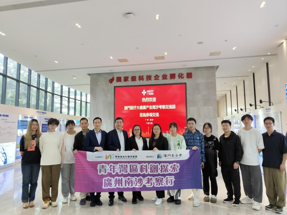 2025 年 11 月 15-16 日,澳门科技大学药学院 9 名研究生在周娜助理教授带领下,参加由澳门抗癌协会、粤港澳青年优秀协会联合主办的“青年湾区科创探索・广州南沙考察行”。粤港澳青年优秀协会会长、澳门抗癌协会荣誉会长罗彩燕,澳门抗癌协会常务副会长朱文立医生、理事长罗光辉医生,粤港澳青年优秀协会常务副会长、澳门抗癌协会顾问杨仲伟等参与活动。